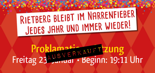 Liebe Gäste, am 11.11. sind wir bei Euren Ticketwünschen überrollt worden. Die Proklamationssitzung am Freitag ist restlos ausverkauft. Leider hat sich das neue Formular nicht ...