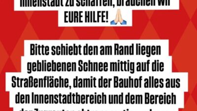Hilfe benötigt für Rosenmontag 2026 Die Umzüge finden trotz des Schnees statt! ❤️💛 Aber um möglichst viel Schnee aus der Innenstadt zu schaffen, brauchen