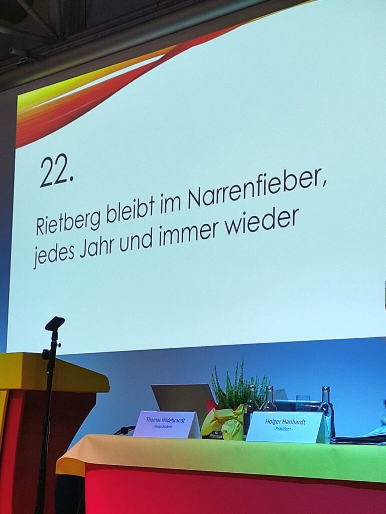 Im weiteren Verlauf der Versammlung sprach Präsident Holger Hanhardt die drängenden Platzprobleme des Vereins an: Wagenbaugruppen suchen händeringend nach geeigneten Bau- und Lagermöglichkeiten, der Fanfarenzug hat keinen festen Probenraum, und Archive sowie Materialien sind auf zahlreiche Orte in Rietberg verteilt. Als möglichen neuen Standort stellte er das derzeitige Feuerwehrgerätehaus vor. Die Mitglieder wurden um ein Votum gebeten, ob die Verhandlungen für diese Lösung fortgeführt werden sollen.