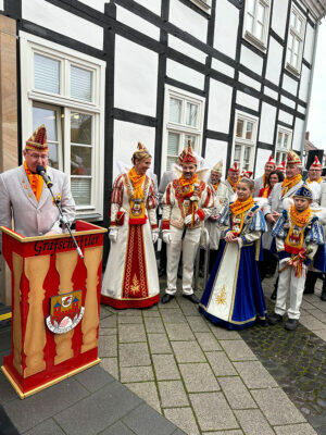 Um 10:45 Uhr heißt es dann für alle Aktiven: Antreten in der Müntestraße auf dem Parkplatz Vogt. Hier wird sich die bunte Schar versammeln, um gemeinsam zum traditionellen Umzug aufzubrechen. Der kleine Festumzug, der ab 11:00 Uhr durch die Rathausstraße und den Klingenhagen zieht, sorgt sicher für gute Laune und Vorfreude auf die kommenden Veranstaltungen der Session.