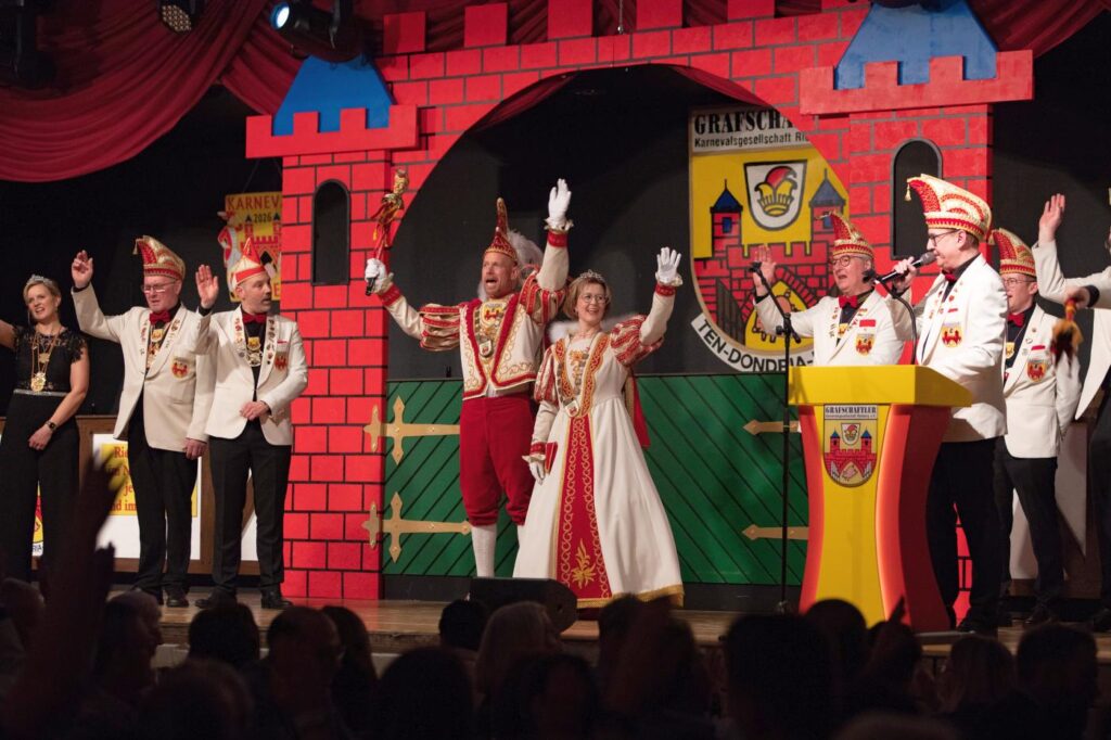 Im festlichen Rahmen der Proklamation, die von Musik, Tanz und Jubel begleitet wird, wird das neue Prinzenpaar feierlich vorgestellt.