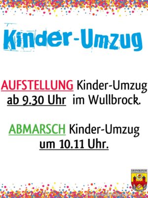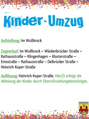 Wichtige Information: Der Kinderumzug beginnt im Wullbrock und endet in der Heinrich-Kuper-Straße. Details findet ihr in den Bildern.