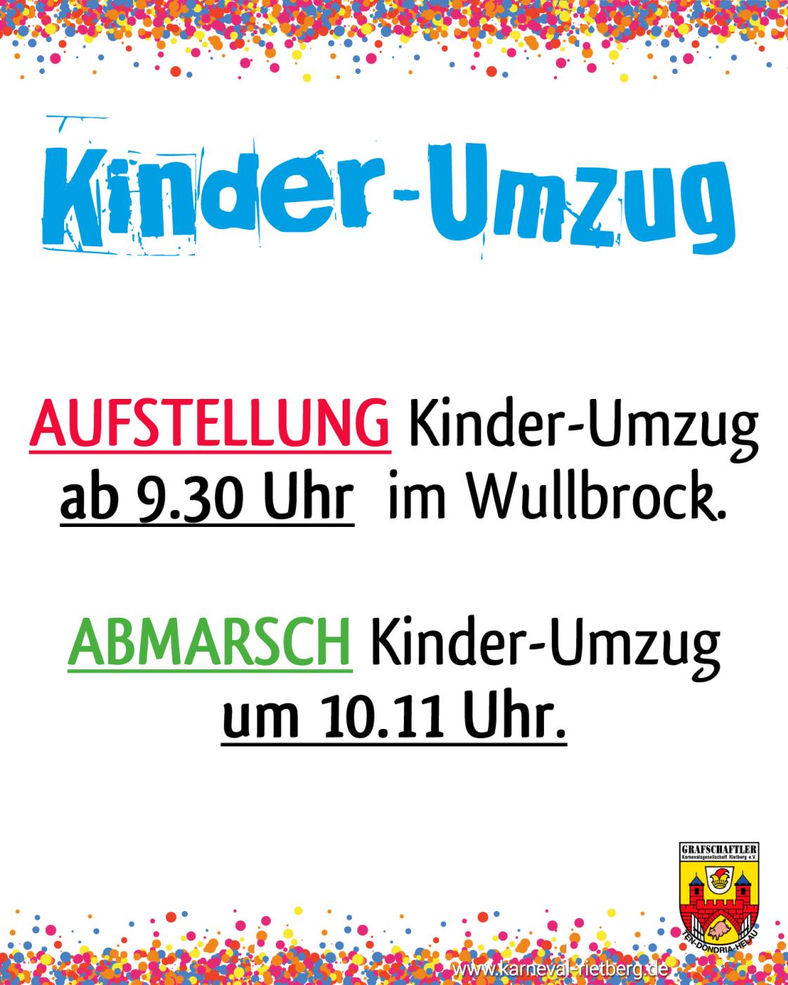 Die Zugaufstellung wird einige Tage vor dem Kinderumzug hier bekanntgegeben und entsprechend an die teilnehmenden Gruppen weitergeleitet. Zugaufstellung 2026